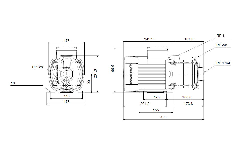 CM 5-4 A-R-A-E-AQQE J-A-A-N Compact, reliable, horizontal, multistage, end-suction centrifugal pump with axial suction port and radial discharge port. The shaft, impellers and chambers are made of stainless steel. The inlet and discharge parts are made of cast iron. The mechanical shaft seal is a special designed, unbalanced O-ring seal. Pipework connection is via internal Whitworth pipe threads, Rp (ISO 7/1). The pump is fitted with a 3-phase, foot-mounted, fan-cooled asynchronous motor.